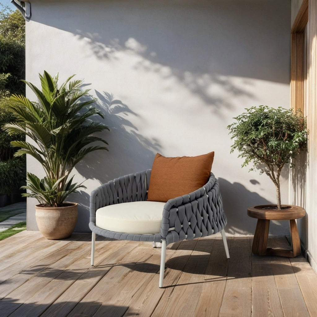 Elevate your outdoor seating experience with our sleek and contemporary Round Aluminium Chair. Crafted to perfection, it seamlessly combines form and function. The round design and clean lines add a touch of sophistication to any outdoor setting. Aluminium Build: Crafted from high-quality aluminium, this chair is built to withstand the elements, ensuring long-lasting beauty. Sink into the webbed seat, designed for both support and relaxation.DIMENSIONS:35"W * 35"D * 25.5"H